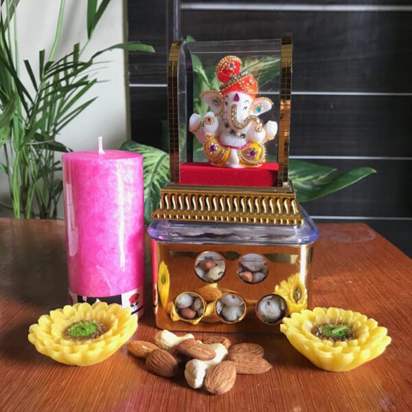 Gifting is not as simple as it seems; it requires keen observation to choose the best gifts for everyone on any occasion. With Diwali approaching, we’re excited to present our new range of Diwali gift hampers. This particular hamper includes a metal Ganesha idol, a designer apple-shaped watch, and a leather journal, making it one of the best gifting solutions for your friends, family members, and relatives.