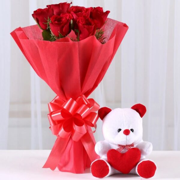 This exciting flowers and teddy combo contains: 10 fresh Gerbera bunch One 6 inch teddy While we always strive to ensure that products are accurately represented in our photographs, from season to season and subject to availability, our florist